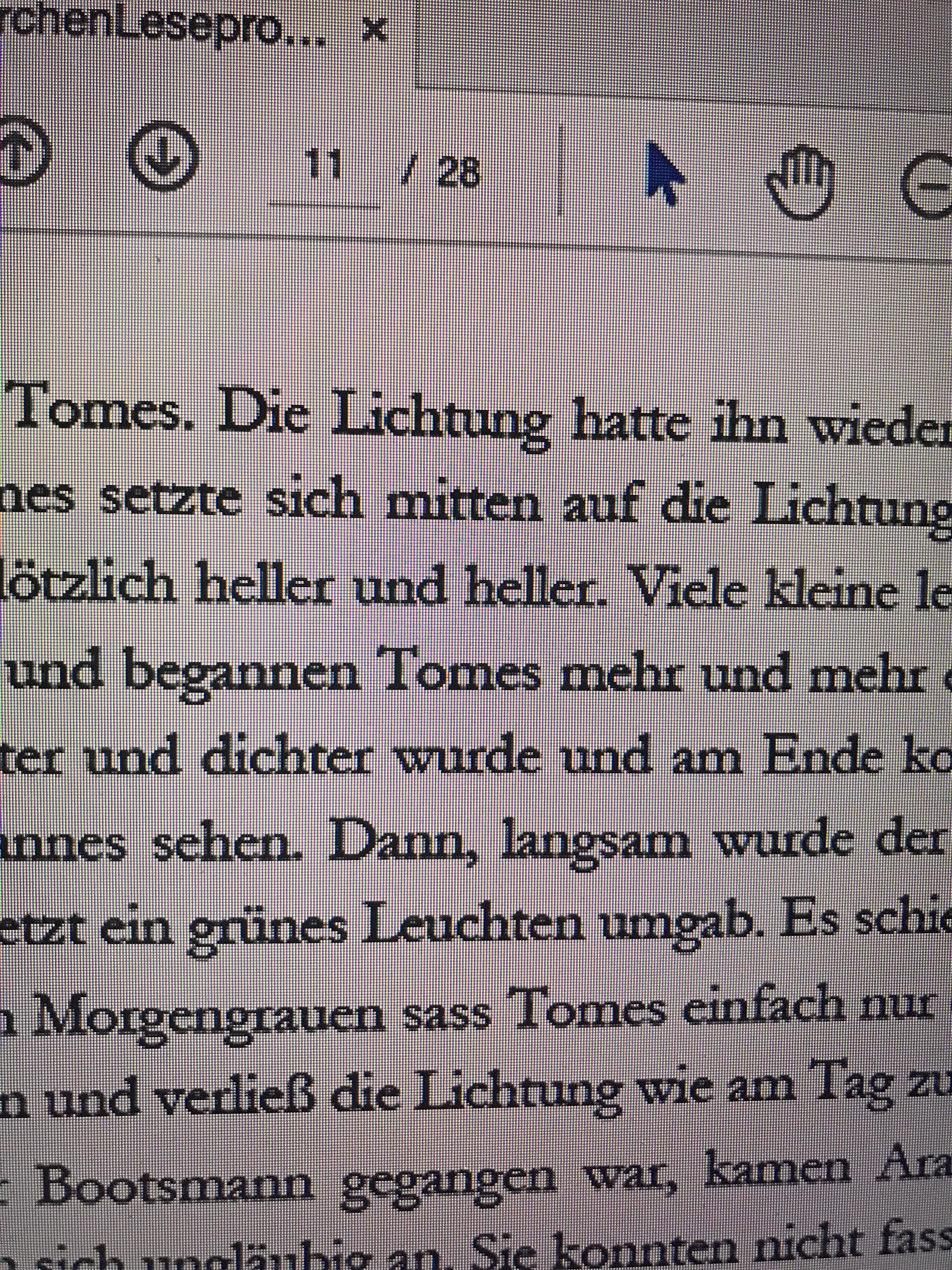 Oh je, 11 Seiten von 28… Märchen zu überarbeiten könnte meiner Meinung nach auch zauberhafter sein. Aber Prinzen verflucht, Elfen verwirrt und Trolle traurig macht, hat es wohl nicht besser verdient. Bloss gut, dass ich am Schluss auch überall ein Happy End kreieren kann.